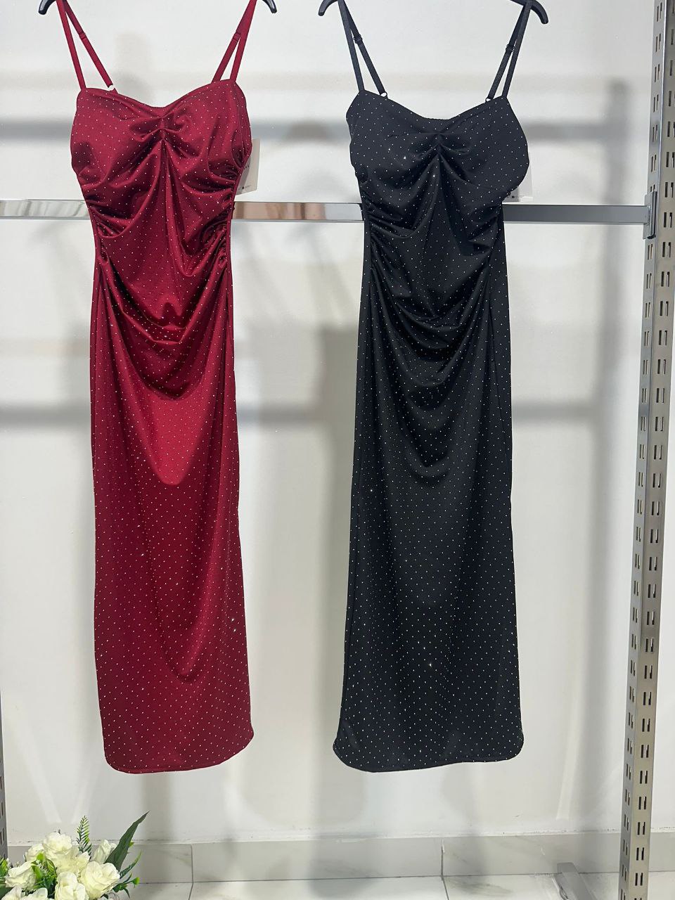 Vestito Sara unisce eleganza e sensualità in un design moderno, arricchito da strass che donano una luminosità raffinata. Perfetto per chi desidera distinguersi con stile, questo vestito valorizza la figura con un tocco di brillantezza discreta, ideale per occasioni speciali e serate importanti.